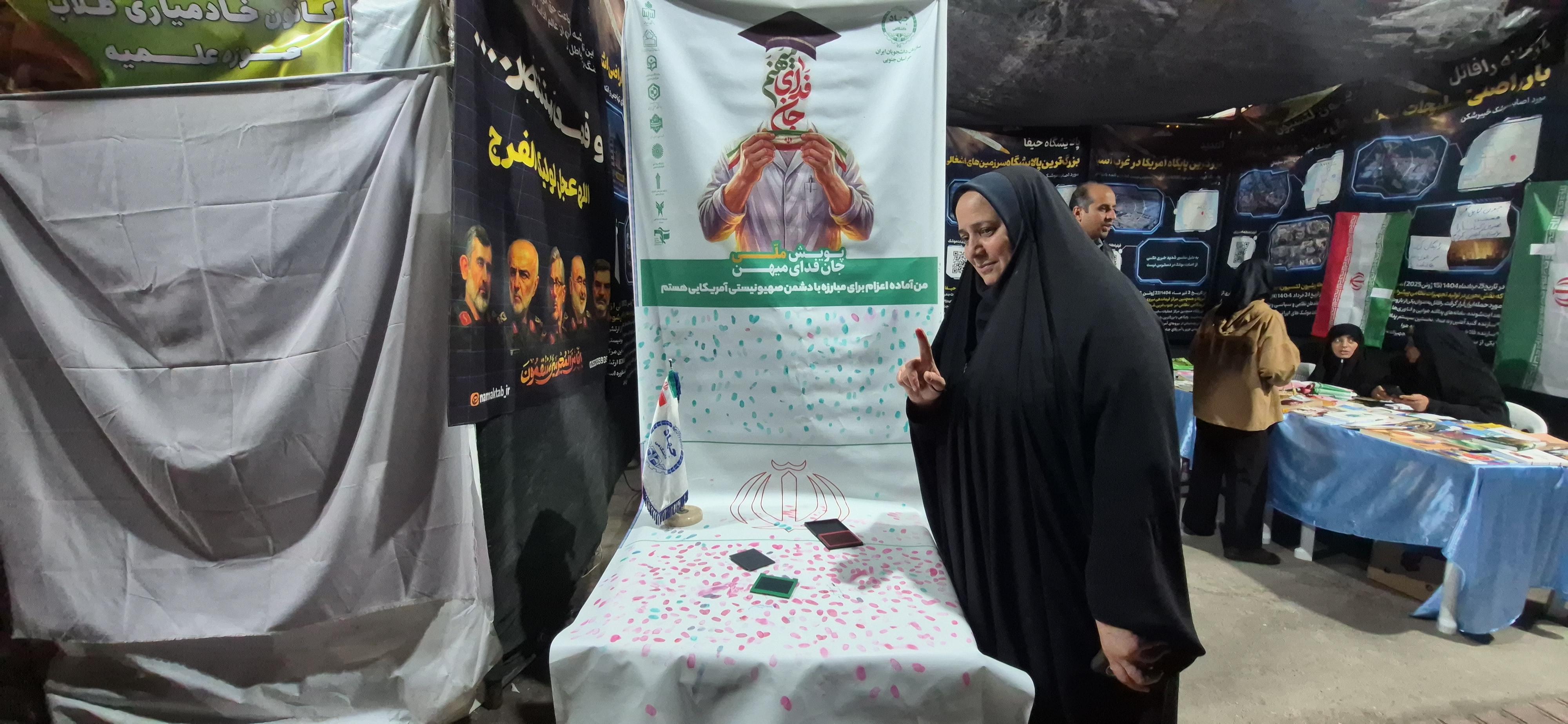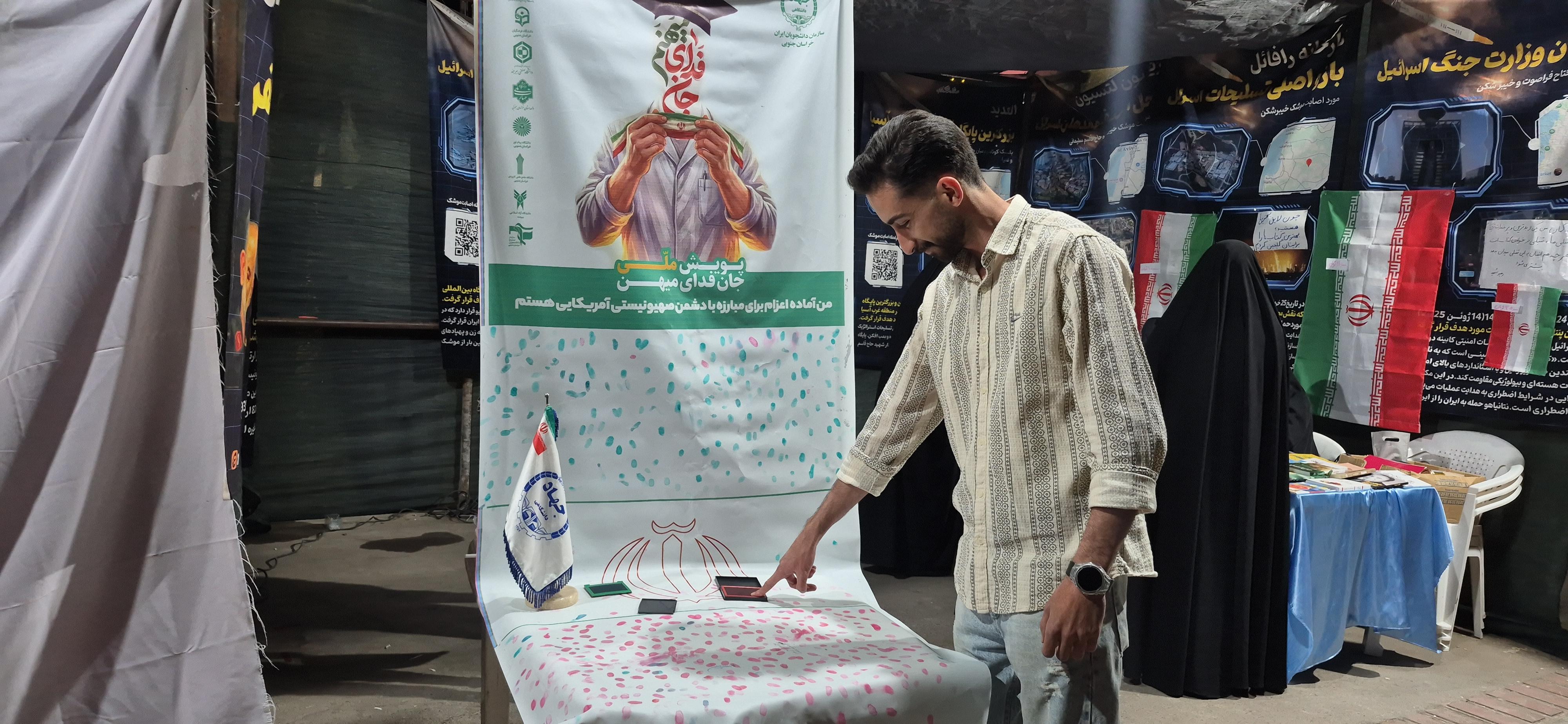 به گزارش روابط عمومی جهاددانشگاهی خراسان جنوبی، سازمان دانشجویان جهاددانشگاهی خراسان جنوبی، پویش ملی جان فدای میهن را با شعار "وتن فدای وطن" در میدان اجتماعات شهید رییسی بیرجند برگزار و مردم و دانشجویان برای ثبت اثرانگشت این همدلی در این پویش شرکت کردند.