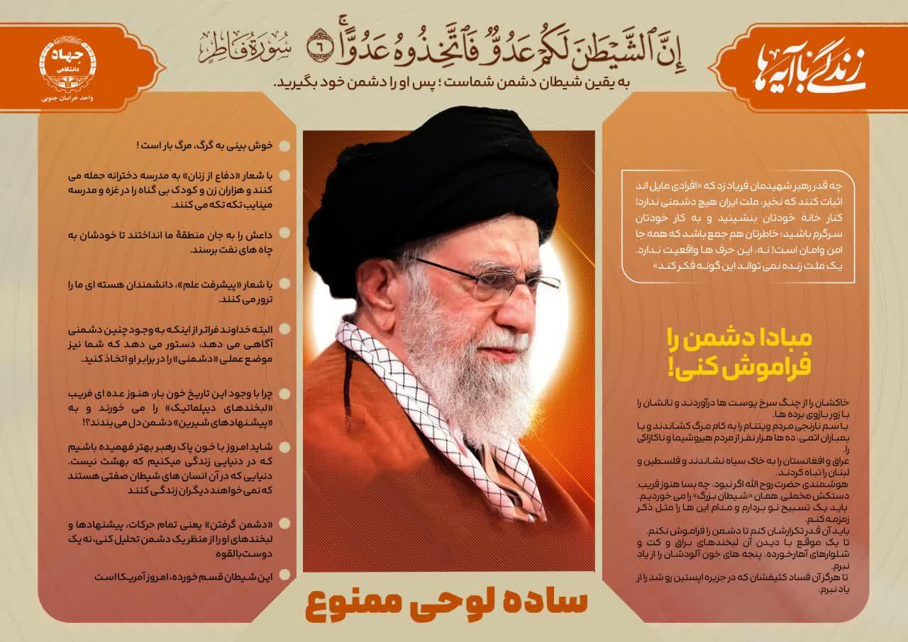 به گزارش روابط عمومی جهاددانشگاهی خراسان جنوبی، این طرح میکوشد با بهرهگیری از بیان تصویری، پیام آگاهیبخش این آیه را درباره هوشیاری مؤمنان در برابر وسوسههای آشکار و پنهان انتقال دهد.